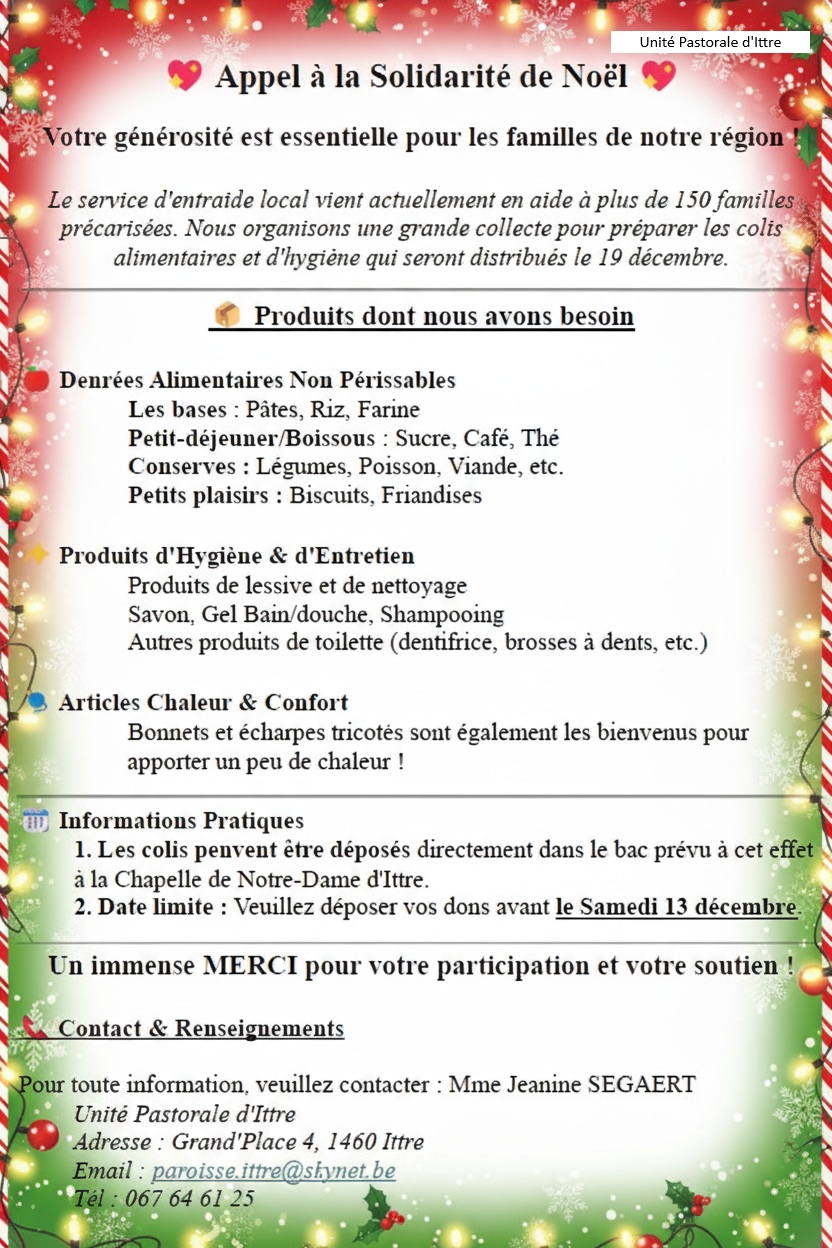 Pour toute question contacte : paroisse.ittre@skynet.be
